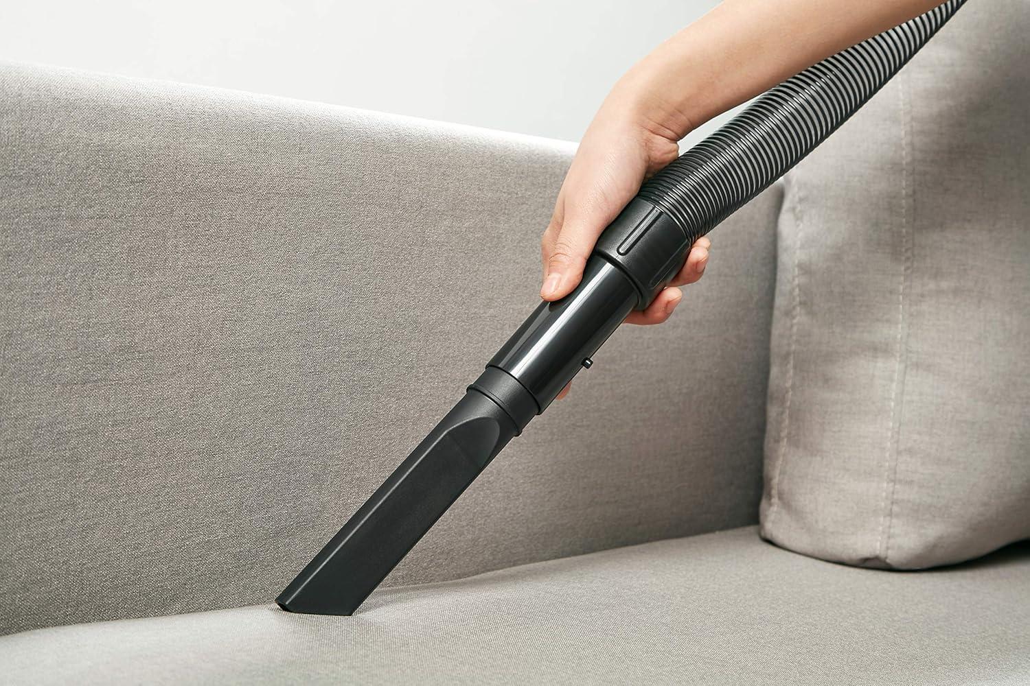 The corded lightweight bag less upright vacuum cleaner comes with a detachable steel hand and 3 on-board tools so that you can use it to clean ceilings, tight spots and other hard-to-reach places. This upright vacuum cleaner has 5 height adjustment settings for multi-floor cleaning. Plus, this hard floor and carpet vacuum also comes with a transparent, easy-to-empty XL dust tank which will enable you to see when it is full and to enjoy hassle-free and mess-free emptying.